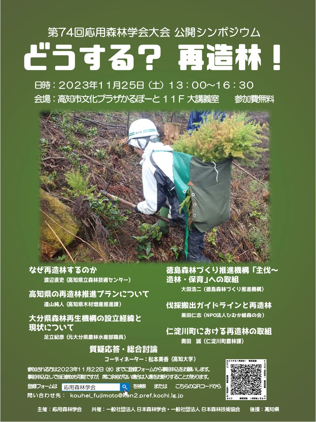 - 第74回応用森林学会大会(高知)の参加申し込みの受付を延長しました。詳細は開催要領をご覧ください。