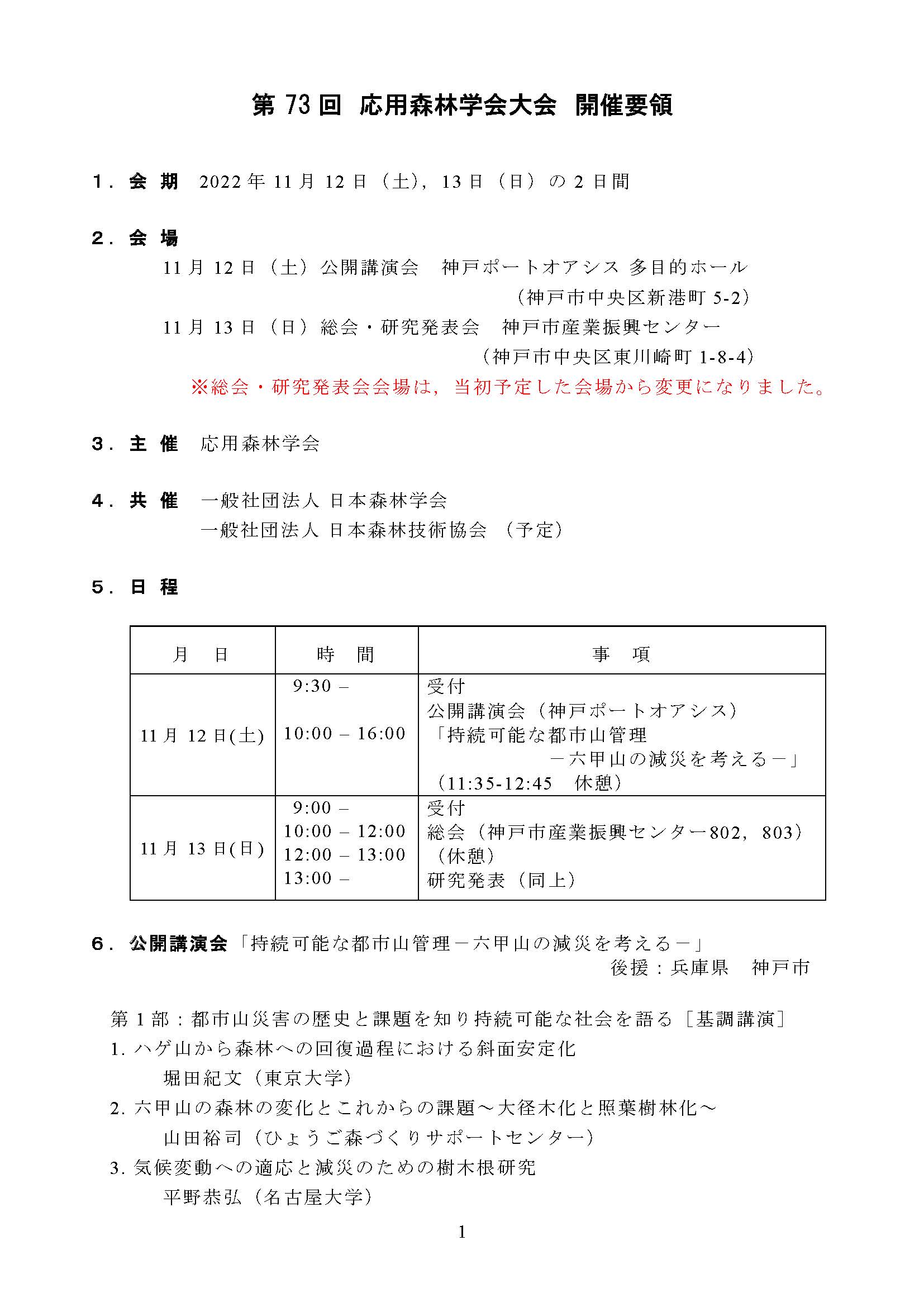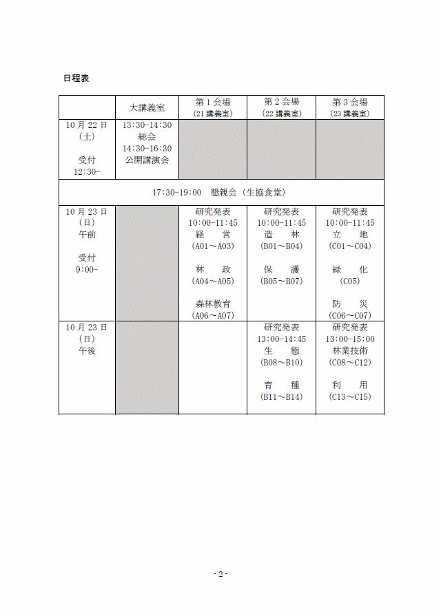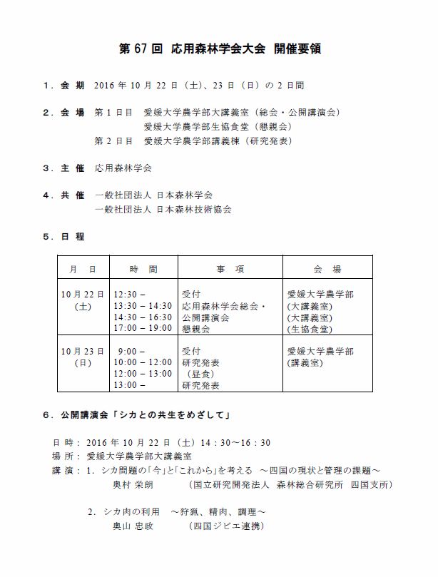 - 第74回応用森林学会大会(高知)の開催要領を更新しました。