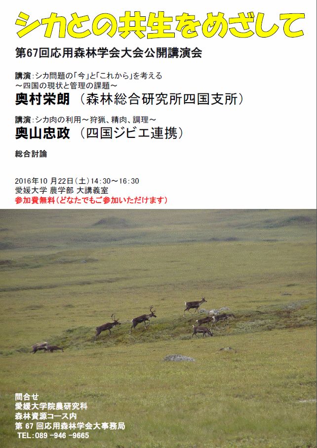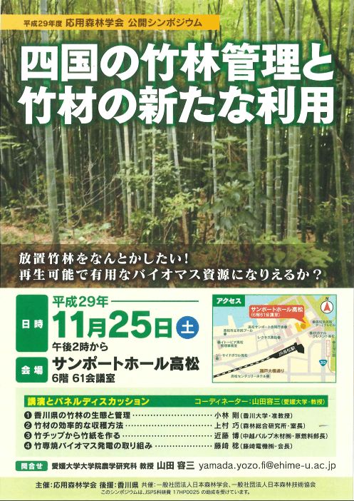 - 第74回応用森林学会大会(高知)の要旨集、公開シンポジウムの要旨を公開しました。